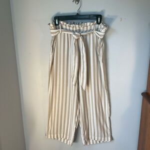 Fever Cropped Paper Bag Pants, Cream and Tan Striped, Large