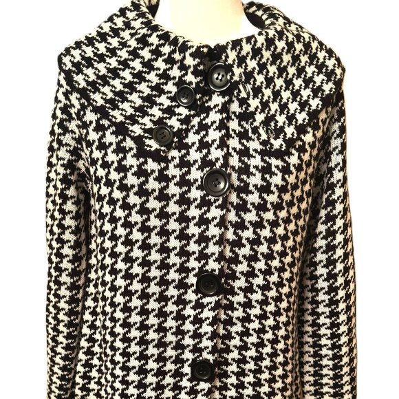 Fever Elegant Classic Houndstooth Coatigan Platter Collar Sz Large