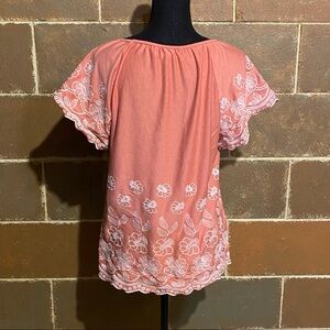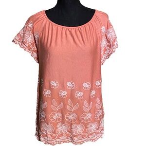 Fever Embroidered Boho Coral Top Women’s M Medium