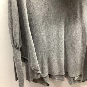Fever Grey Knit Cowl Neck Tunic Faux Wrap Sweater Top Size Medium Preowned. Has ribbed fitted endings on sleeves. Sweater is from the