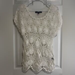 Fever Hand Crochet Women’s Ivory Acrylic Knit Top Sweater Sz. Small