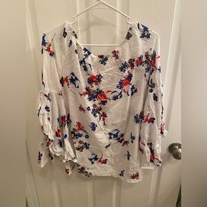 Fever Off-The-Shoulder Top EUC (Just Needs Steamed) Size: Large Color: White w/ Multi-colored Flowers