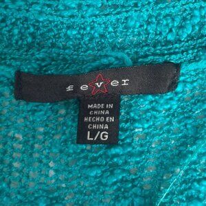 Fever Open Front Cardigan Sweater Womens Large Teal Lightweight Long