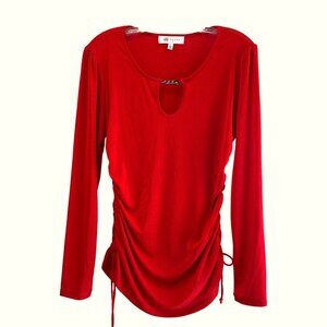 Fever Red Velvet Large Ruched Top Long Sleeve Chain Keyhole Club Party Shirt