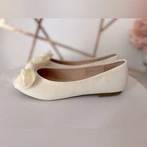 Fever sole women's white ballet flat with a round toe and a decorative bow. These flats are designed with a soft cushion and an extra-padded latex footbed for comfort. Suitable for daily wear and various occasions.