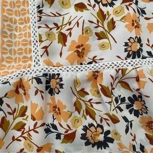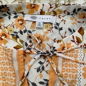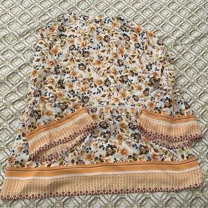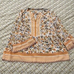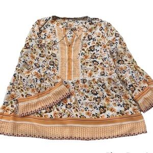 Fever Spring Shirt Cottagecore White & Peach Casual Boho Bell Sleeve Peplum Sz M