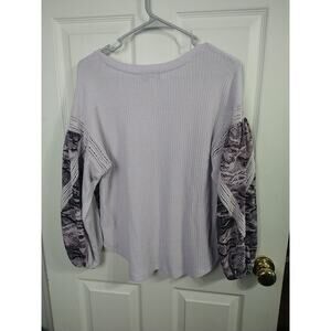 Fever woman purple waffle knit semi sheer balloon animal print sleeves in excellent condition. Lightweight crocheted ladder shoulder accent sleeves. Thin elastic at wrist