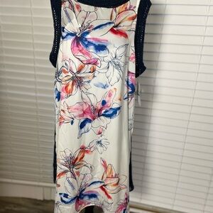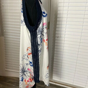 Fever Women's Dress Sleeveless Crochet Trim Crew Neck Allover Floral X-Large