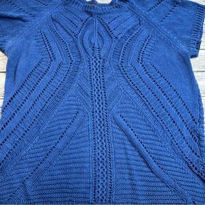 Fever Women's Open Crochet Short Sleeve Sweater Blouse Royal Blue S SM Small Rib