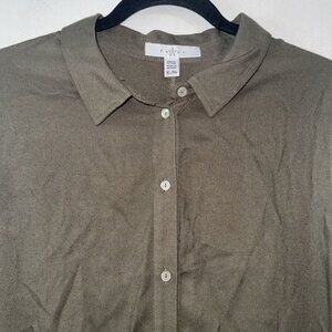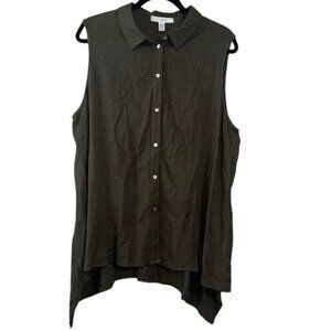 Fever Womens Sleeveless Button-Down Tunic Top Asymmetrical Hem Olive Green XL