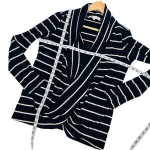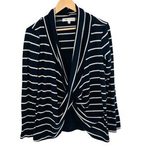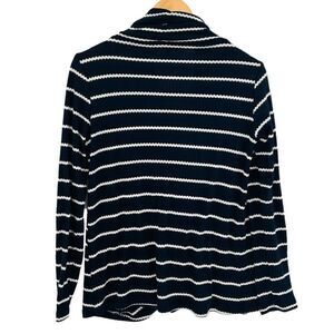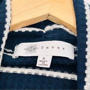 Fever Womens Striped Shawl Collar Pullover Top faux layer navy white size small. Excellent preowned condition see photos for details, fabric content and measurements