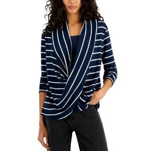 Fever Womens Striped Shawl Collar Pullover Top faux layer navy white size small