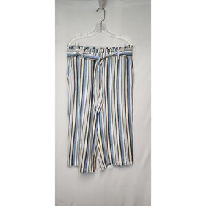 Fever Womens Wide Leg Paperbag Elastic Waist Multicor Blue Stripe Pants Size L.