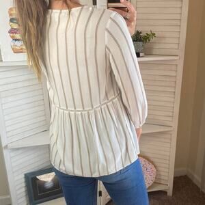 white striped 3/4 sleeve boho peasant blouse