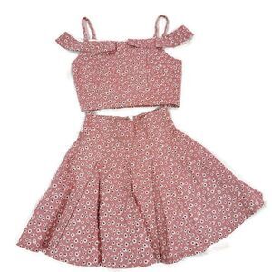Few Moda NY Floral Two-Piece Pleated Skirt Set in Pink Size Small NYT