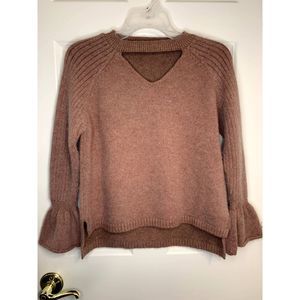 Few Moda Pink Angora Blend Keyhole Bell Sleeve Knit Sweater Size Small
