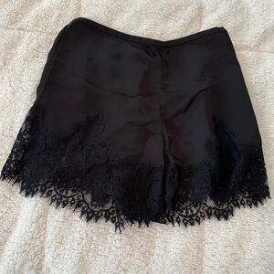 These elegant black shorts feature a delicate lace trim. Great with tights and boots.