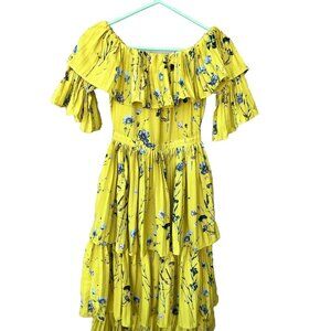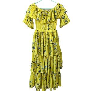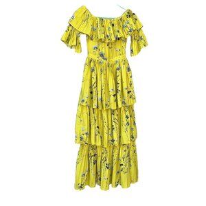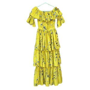 Few moda Women's Yellow Floral Off the Shoulder Pleated Maxi Dress Size S NWOT