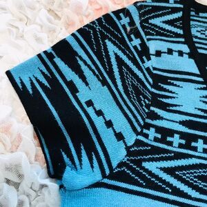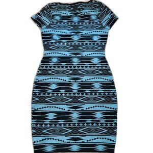 New Fiancee Blue Dress women bodycon short sleeve dress with geometric print size S