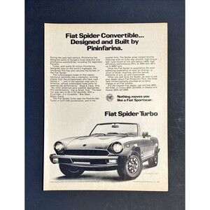 Fiat Spider Turbo Convertible "Designed & Built by Pininfarina" Vintage Print Ad 1982 Car & Driver Magazine October 1982 About 11 x 8 Inches. Carefully shipped.