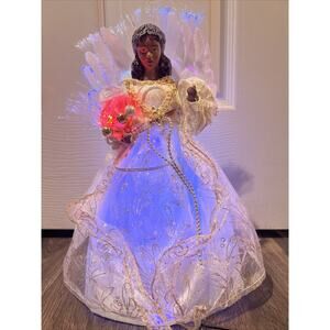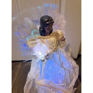 Fiber Optic CHRISTMAS African American 12” Ceramic Angel Tree Topper Plug In