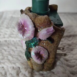 The product is a unique night light featuring a butterfly floral design, illuminated using fiber optic lighting technology. It operates with a switch for easy on and off control. This whimsical and elegant lighting fixture would be a charming addition to any bedroom or living space, creating a warm and inviting ambiance with its soft glow. Ideal for adding a touch of nature-inspired beauty to any room, this night light is both functional and visually appealing.