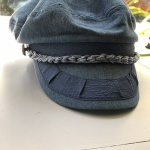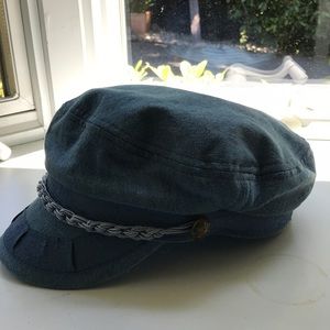 Blue fiddler hat. Only worn twice. In perfect condition! Super cute with all colors.