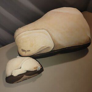 In a cozy corner of the living room, Sandee the Lab rests as a timeless piece of comfort and art. Created by Leslie Anderson and manufactured by Fiddler's Elbow, this dog-shaped pillow encapsulates warmth and nostalgia. Its design, featuring a serene lab, offers a gentle reminder of loyalty and companionship.