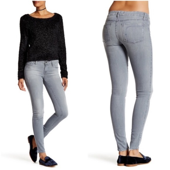 Mid rise skinny jeans.