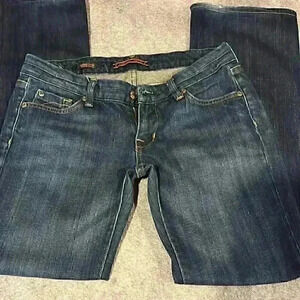 Fidelity Denim Japan Rose Skinny Flare in Midnight Sapphire size 27. These jeans have been hemmed to 29”. They are in good used condition with the only signs of where, being on the hem, and a very small slaw as shown in the pictures.