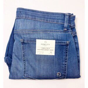 Fidelity Denim Womens Gwen Med Wash Mid Rise Cropped Skinny Jeans Sz 31 NWT