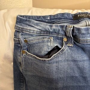 This is a used Fidelity Jeans Mens 36 (Act. 36x28) Denim Torino Slim Fit Straight Stretch Blue. in great condition, no tears or flaws.has been worn and didn’t tags.