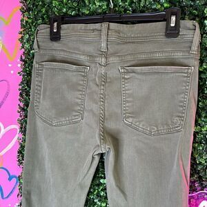 Olive green Fidelity Sola Skinny Jeans ship to you in perfect, worn once condition. High end super soft denim has incredible stretch. Almost like wearing yoga pants. Mid rise ankle skinny jeans. Measurements in photos. Last photo is to show fit only. Jeans are olive green. Women’s size 29.