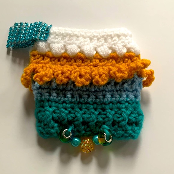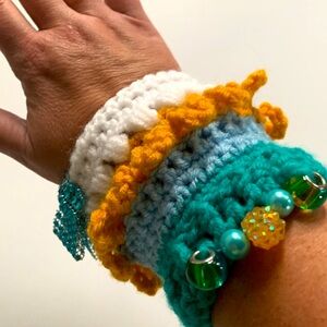 Handmade crochet fidget cuff for helping to deter anxiety and restlessness for those battling dementia/Alzheimer’s.