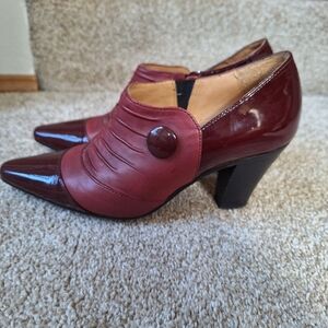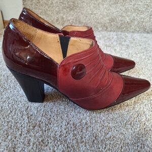 Fidji Womens Pointed Top Heeled Booties. Wine colored. Size EU 36/5.5 US