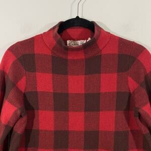 Field Flower Anthropologie Red Buffalo Plaid Wool Blend Mock Neck Sweater Size S