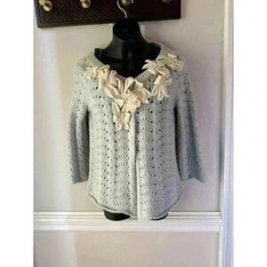 Field Flower Anthropologie Blue Knit 3D Starflower Angora Wool Cardigan