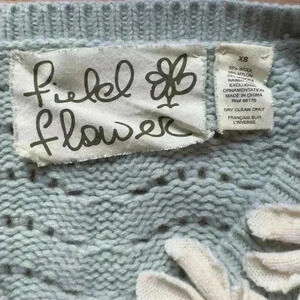 Field Flower Anthropologie XS Blue Knit 3D Starflower Angora Wool Cardigan