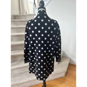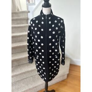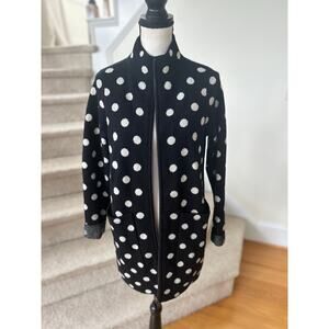 Excellent condition. Black and white polka dot, long line mid thigh full zip. Long sleeves. Can be worn as coat or cardigan. Front pockets.