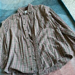 Stylish plaid button-up shirt. Features a classic design with a comfortable fit. Perfect for layering this fall. great pre loved vintage condition size medium by Field Gear