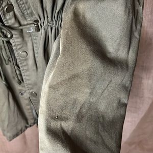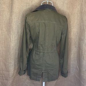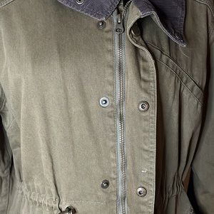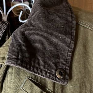 Field and Stream cotton field jacket. Jacket features a corduroy collar, soft snd warm flannel lining, zip front, snap closures, and drawstring waist. In overall good condition except for slight fading on left sleeve.Please pay close attention to sleeve pics for detail. Size Small measures approximately 19.5” pit to pit, 27” shoulder to hem, and 25” sleeve.