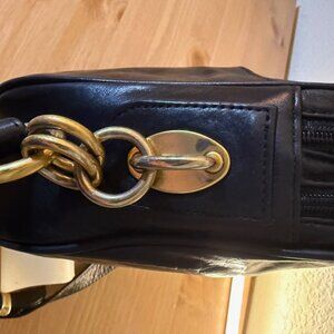 Field Manor Black Leather Purse with Adjustable Strap and Gold Metal Hardware
