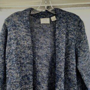 Field Manor Womens Wool Blend Knit Cardigan Open Front Blue/Gray Size Small