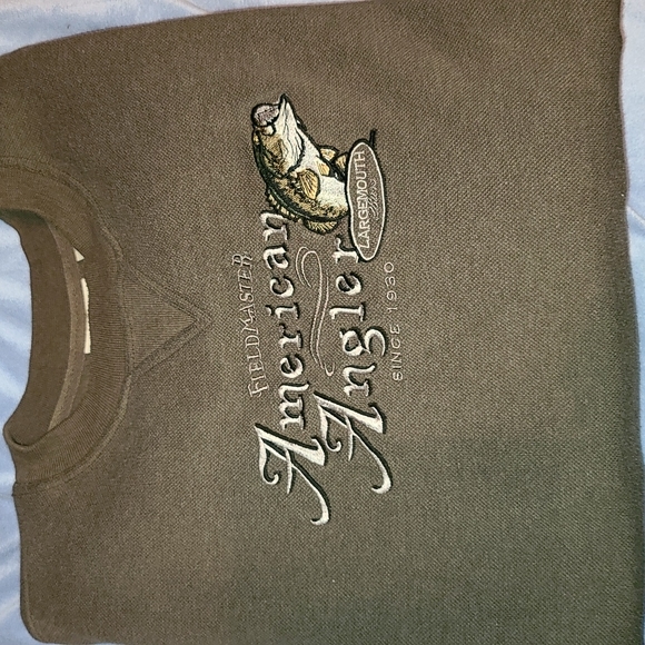 gently worn sweatshirt. beautiful condition. there is a spot on the first can be removed. it was been folded up in hubby's closet.