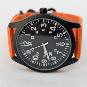 Field Men's Watch 42MM Black Dial Case Orange Canvas Band Straps Easy Read Watch