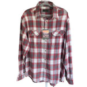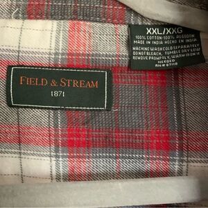Field & Stream Cotton Gray & Red Flannel Long Sleeve Shirt Sz XXL