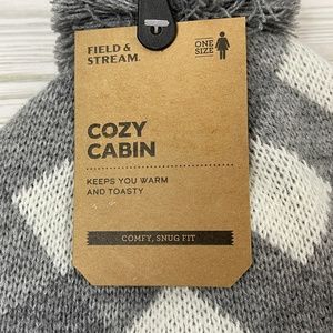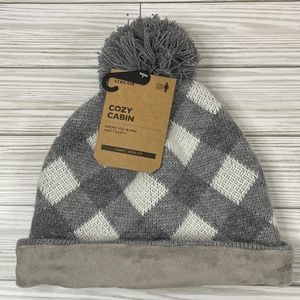 Field & Stream Cozy Cabin Gray and White Plaid Knit Beanie Hat NWT