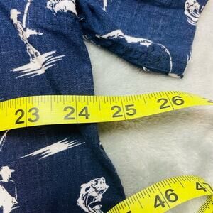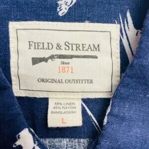 Field & Stream Fly Fishing Patriotic Shirt Mens L Navy Linen Blend Short Sleeve