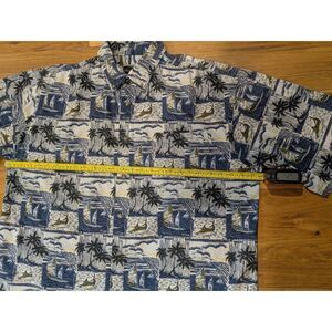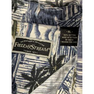 Field & Stream Hawaiian Shirt Men’s XL Sailfish Sailboat Palm Trees Blue Button