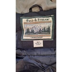The Field & Stream Jacket for men in XLT size is a heavyweight, lined, and full-zip puffer jacket designed for outdoor activities in the winter season. Made with polyester outer shell material and insulated with down, it offers comfort and warmth. The jacket features a solid black color, zip, button, and snap closure, suitable for travel, casual, and workwear occasions. With a vintage style and a regular fit, this jacket is perfect for walking, hunting, and skiing adventures. The Field & Stream brand ensures quality and reliability in outdoor gear.